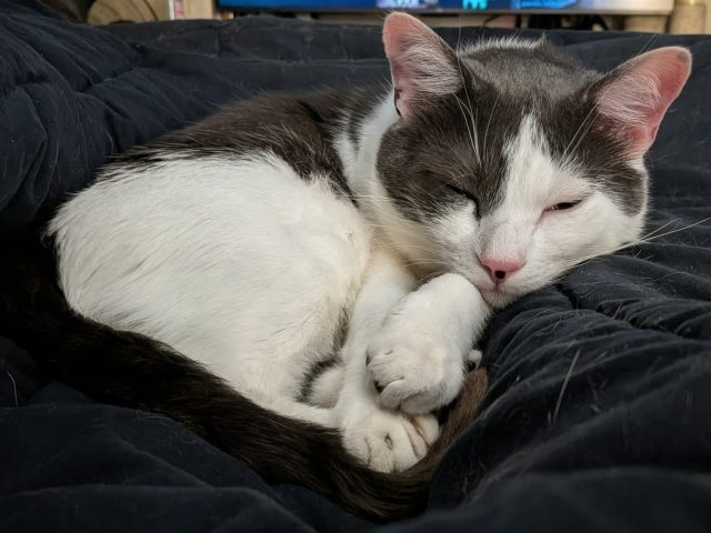 Milo is trying to stay up with me tonight. He’s not built for the night shift either.